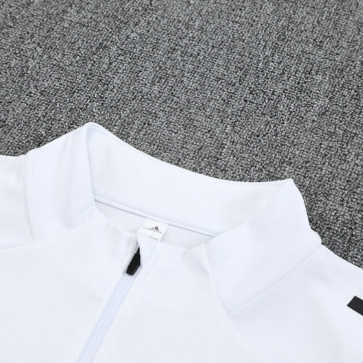 The 2025/2026 Real Madrid White and Black Tracksuit combines classic sophistication with sporty elegance — a true reflection of the legacy of Real Madrid. The crisp white base paired with sleek black accents gives a clean, timeless look that works just as well for training as for casual wear. Made from premium, breathable materials, it offers comfort, flexibility, and durability. A perfect tracksuit for fans who appreciate style, performance, and club tradition.
